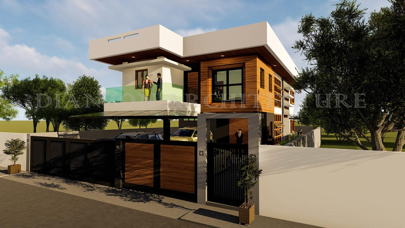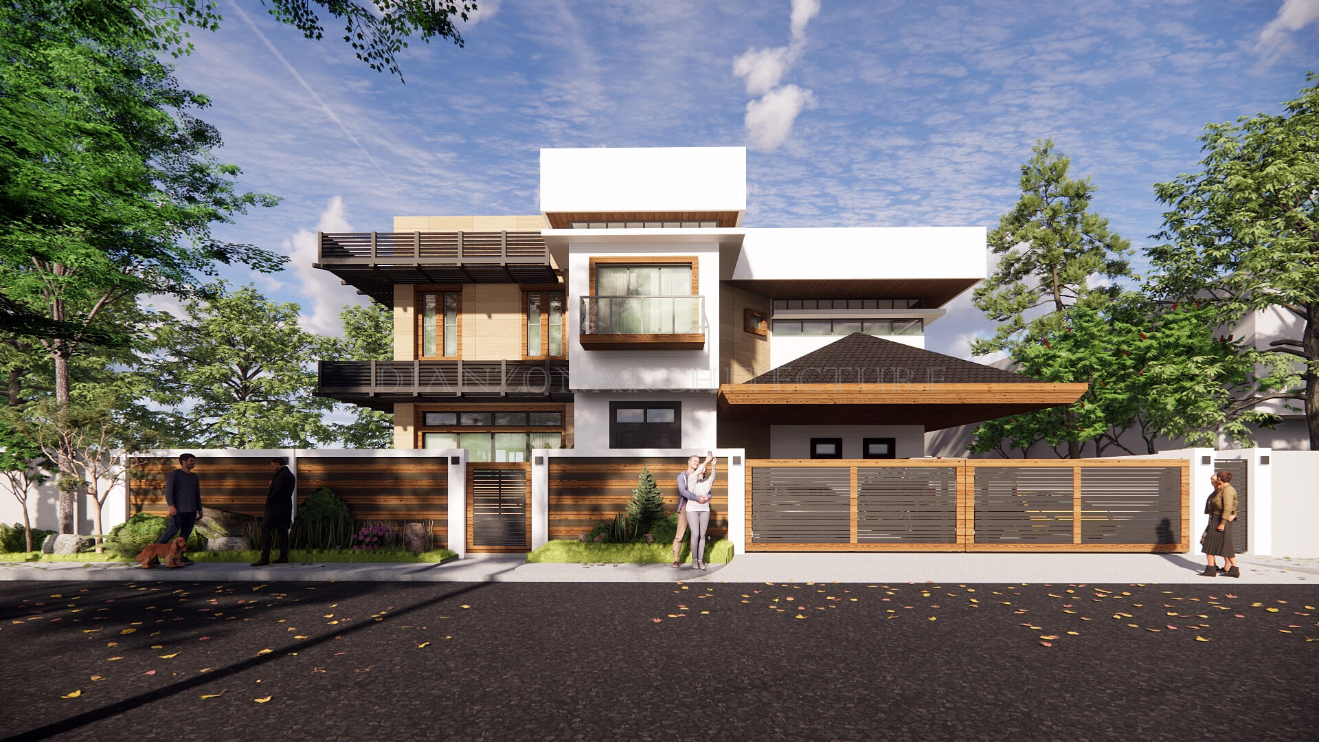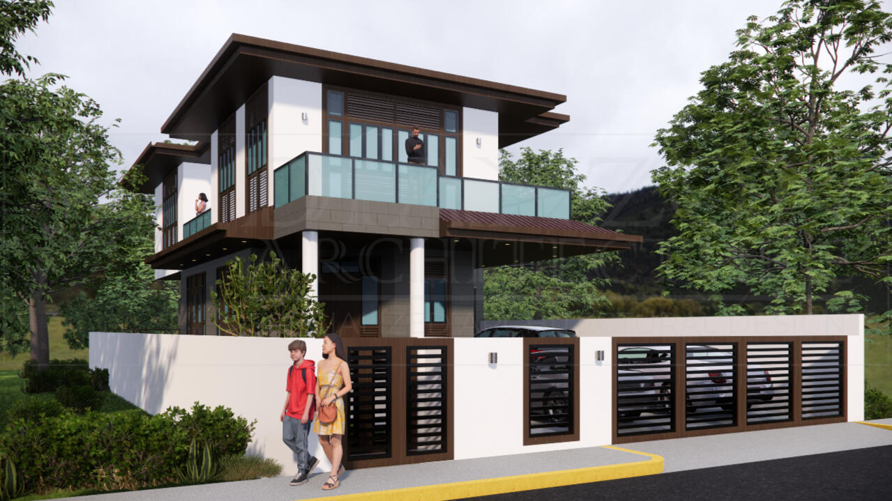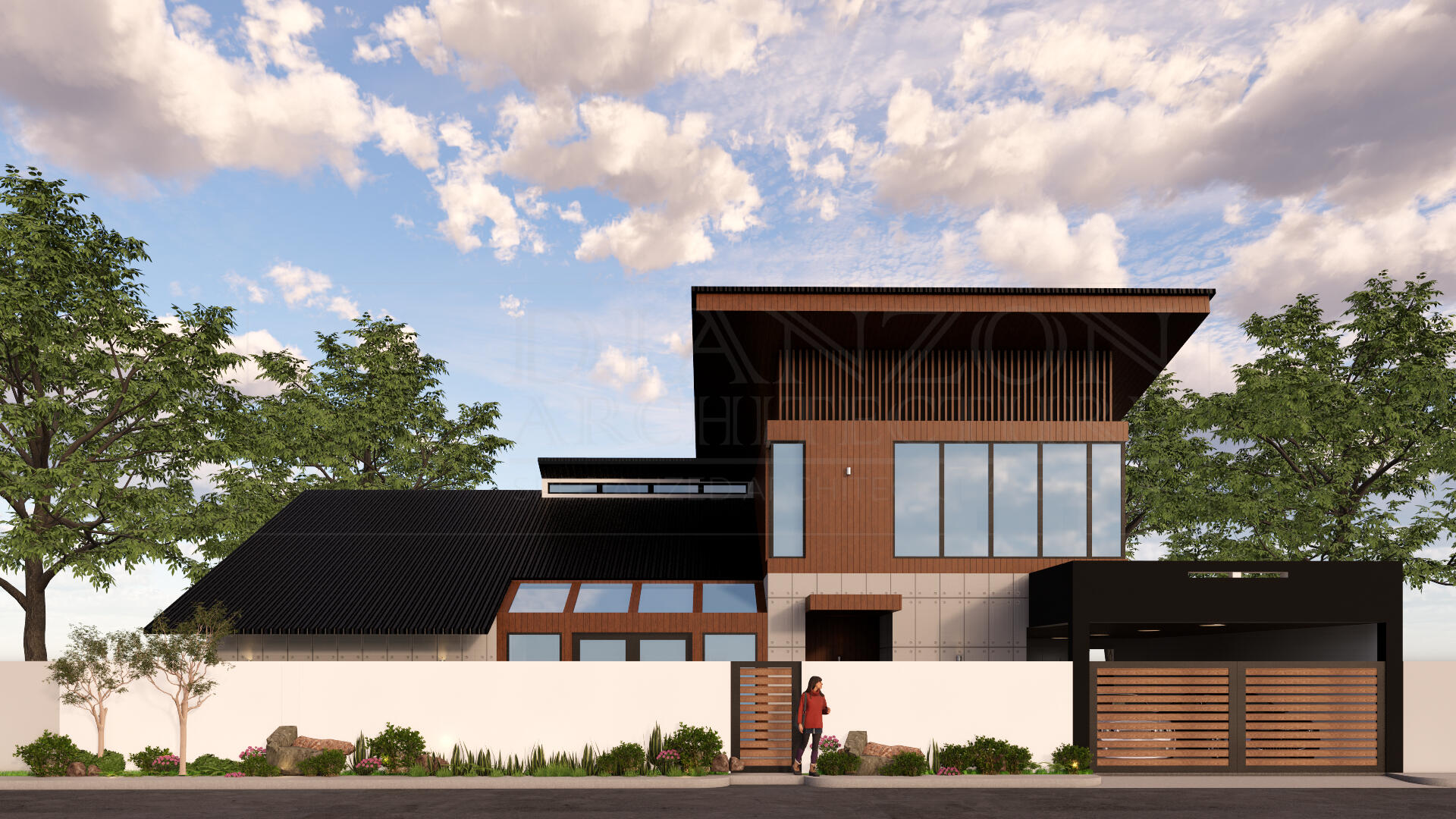 A "Modern Filipino" two-storey residential structure, characterized by its interpretation of the indigenous "Bahay na Bato". The design prominently features locally sourced materials, including wood and adobe blocks. which have been thoughtfully integrated with steel and glass elements to achieve a modern aesthetic. Noteworthy are the strategically positioned high and low windows, which serve to facilitate passive cooling throughout the entirety of the residence.
