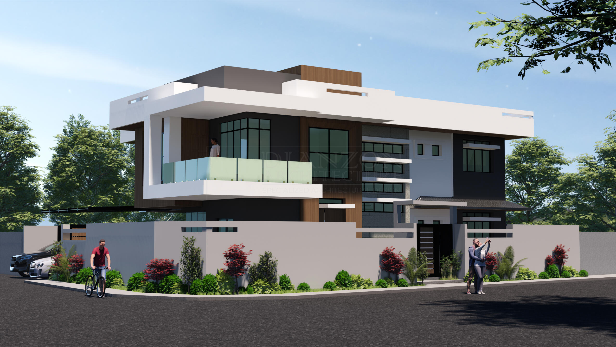 This two-storey residential property is situated on a corner lot within an executive village. The building comprises five bedrooms and five and a half bathrooms, in addition to an ambulatory room. On the second floor, there exists a multi-purpose area that extends to a spacious balcony situated above the carport. This design element capitalizes on the unobstructed view of the open park across the street, evoking the experience of an open deck on a cruise ship.